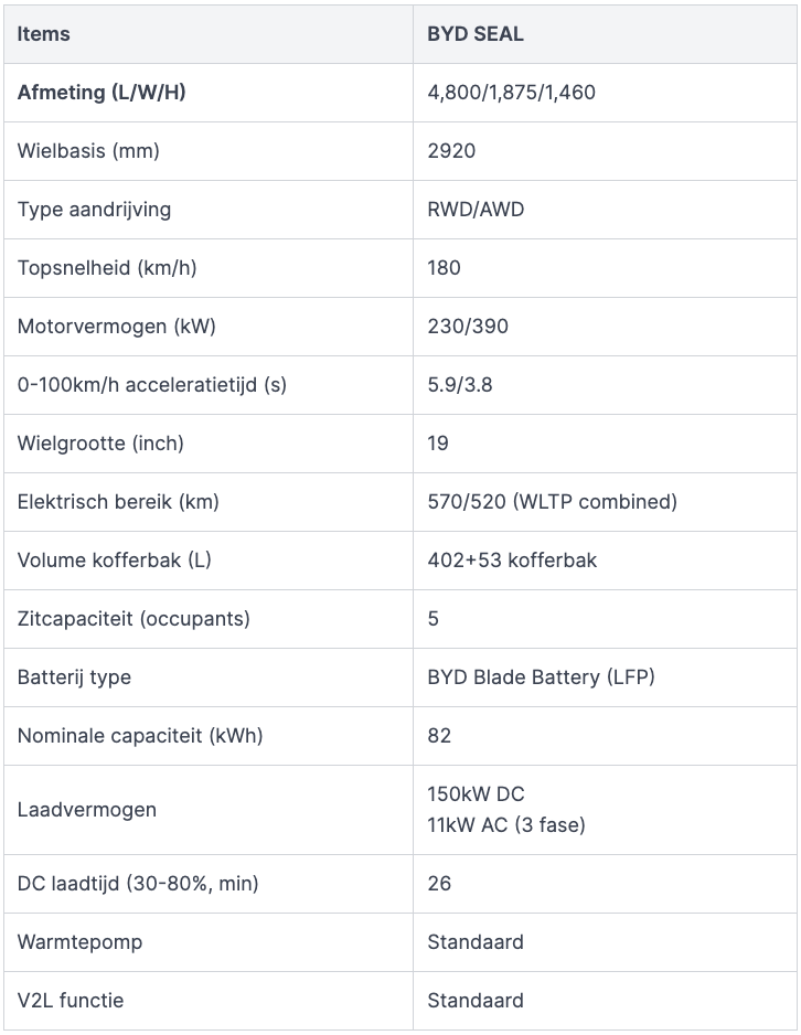 Meer informatie en exacte prijzen worden dichter bij de officiële lancering van de BYD SEAL in augustus 2023 bekendgemaakt.