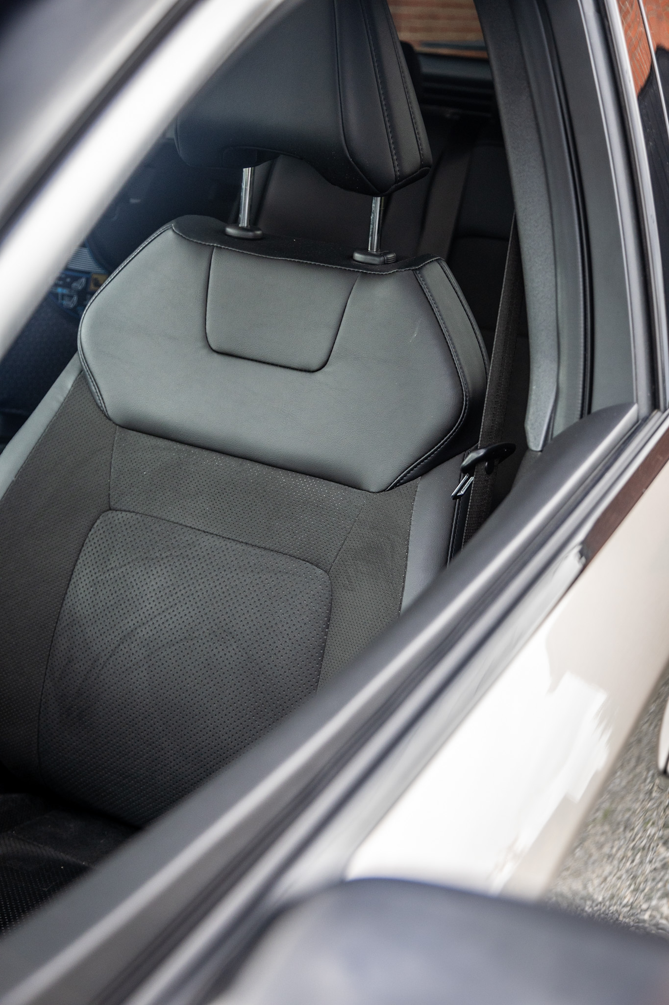 Als we de deur openen is het eerste wat opvalt het ruimte gevoel. Dit komt omdat er geen middenconsole aanwezig is en waardoor de vloer doorloopt tot de passagierszijde. Als je plaatsneemt achter het stuur zit je wel hoger dan normaal, maar dit gevoel is na een tijd verdwenen. Zelf moet ik de rugleuning naar achter zetten, want met mijn lengte van 1m87 is er weinig hoofdruimte. Eens we de autostoel elektrisch geregeld hebben en de positie hebben kunnen opslaan, kunnen we dit toch wel mooie interieur eens verder bekijken.